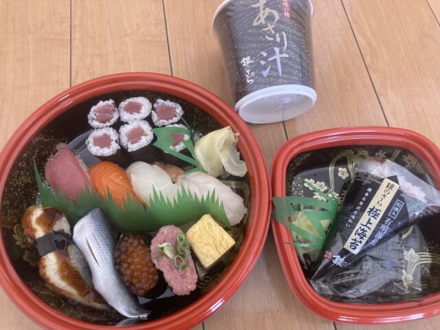 米にするつもりで保有していましたが、申請を忘れていたので、近場の銀のさらでお寿司を持ち帰りしました。
