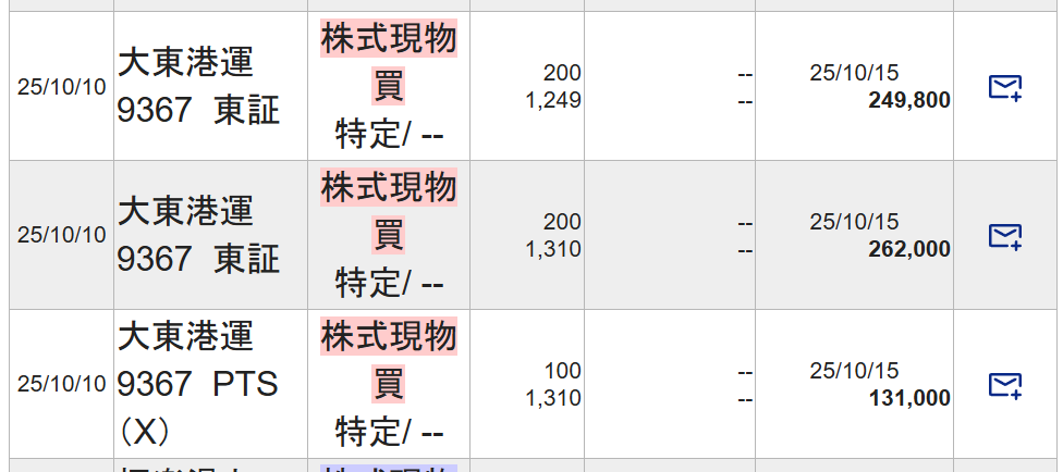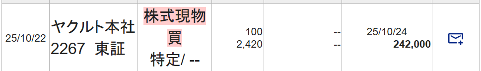 大東港運(9367)とヤクルト本社(2267)を購入