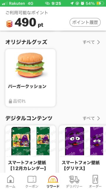 公式アプリ経由で注文することでポイント(1pt=税込み10円)が貯まっていき、リワード(特典)と交換することができます。