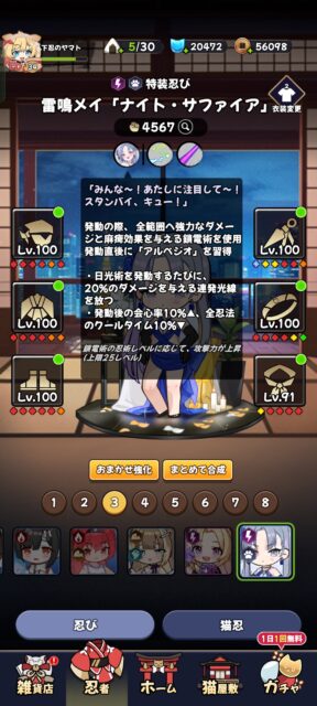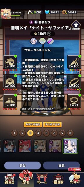 性能面も強い忍法を2つ(鎖電術/日光術)持っているので、そこそこ恵まれています。