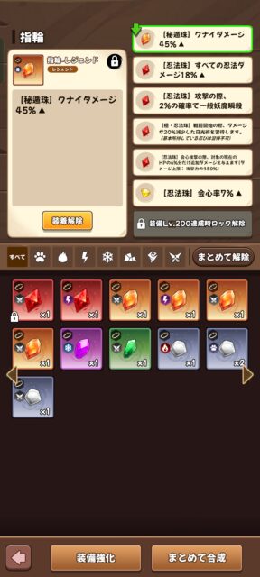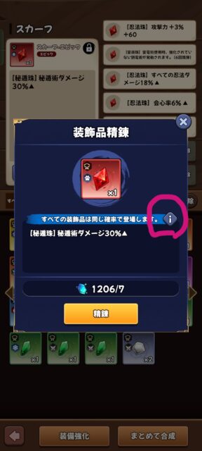 精錬石を消費することで、装飾品の効果を変えることができます。