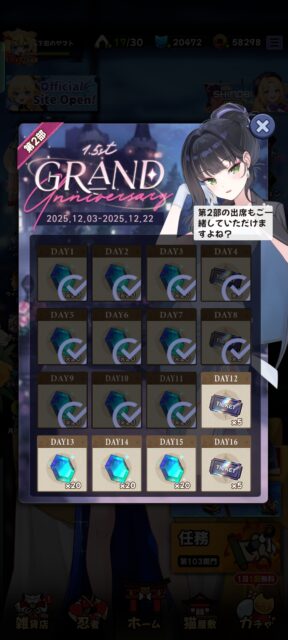 Lv.上げ中に「あかりのシノビロード」ミッションが開催(※)されていたので、特装あかりを使っていました。※2025/12/14でも現在進行形
