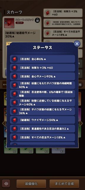 単純な火力強化としての側面、忍術によっては大きく性能がアップするモノ(ここでは進化と呼称)もあります。