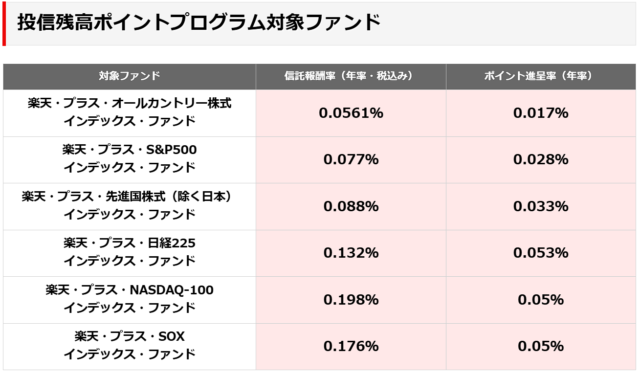 ついでのついでに、楽天・プラス・オールカントリーは「投信残高ポイントプログラム対象ファンド」となっているため、別でポイント還元があります。