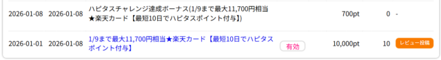 ▼私は楽天カード新規発行で10,700pt(=10,700円相当)GETできました
