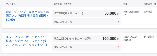 ちなみに私は、10万を「楽天・プラス・オールカントリー」へ、5万を「楽天・SCHD」へ突っ込んでいます。